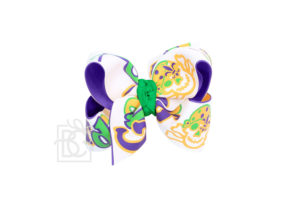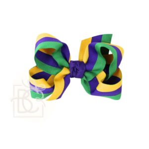 You cannot go wrong with a traditional Mardi Gras Striped Bow or a slightly larger Layered Striped Grosgrain Hair Bow. They match almost any parade outfit perfectly.