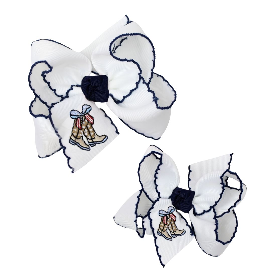 Crochet Edge Hair Bow with Patriotic Boots Embroidery